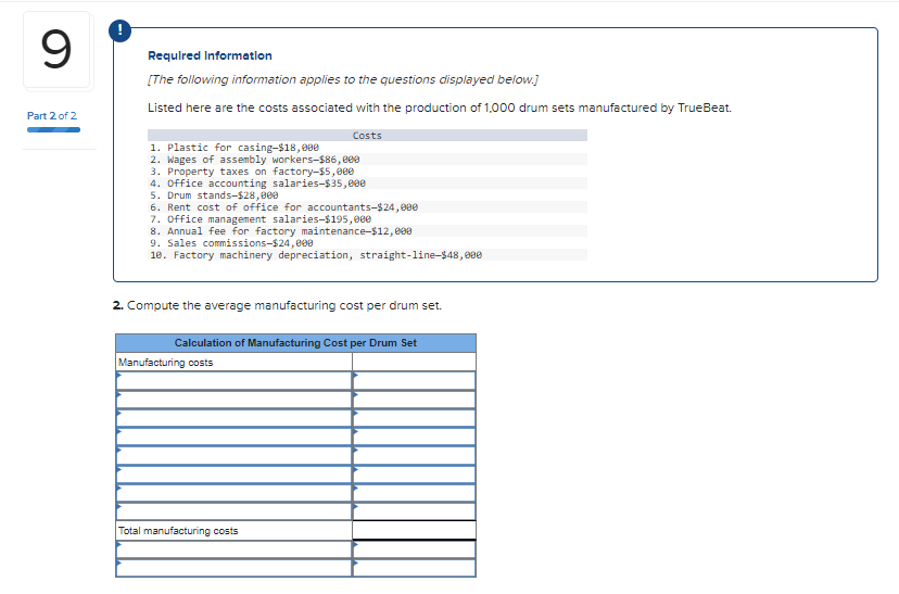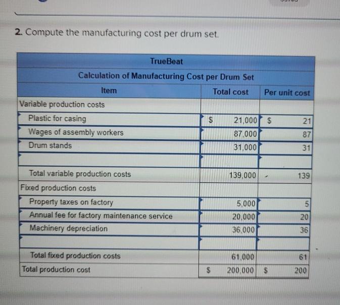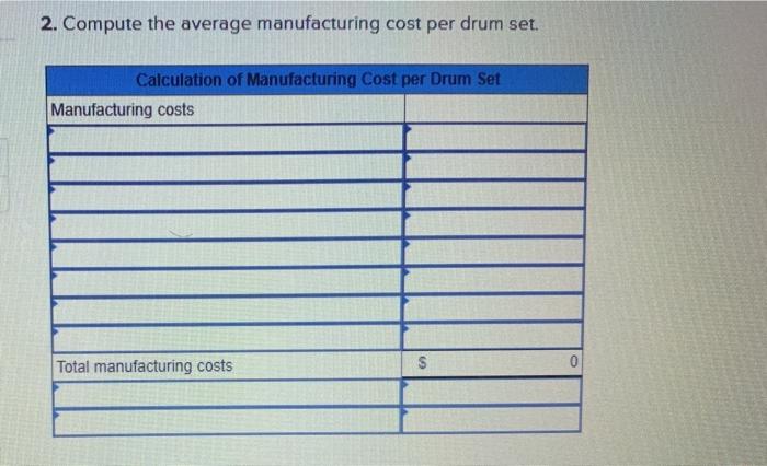 Solved 2 Compute The Manufacturing Cost Per Drum Set Chegg Com